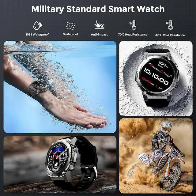 - **Rugged Military Design**: Built to endure extreme conditions with shockproof glass and durable materials.