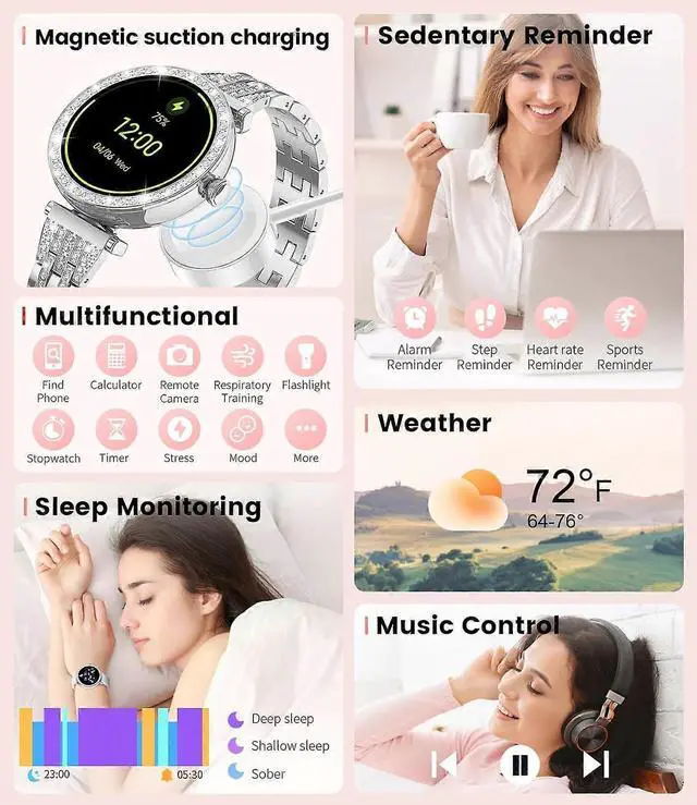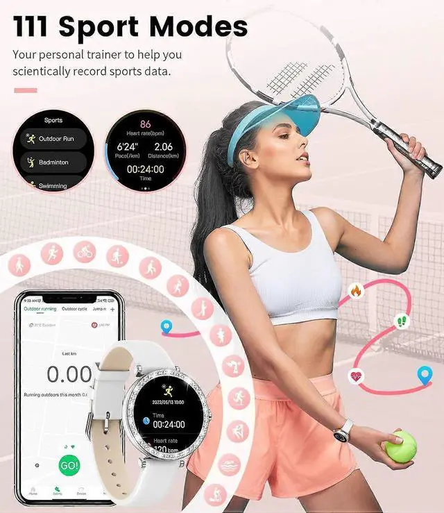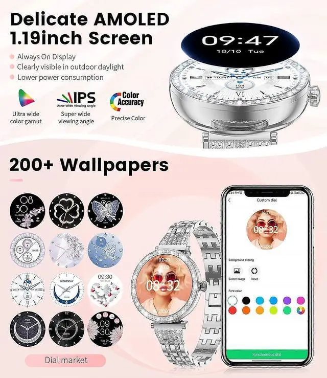 Elevate your style and wellness with this diamond-accented women's smartwatch featuring a 1.19 -inch AMOLED always-on display for vibrant visuals.