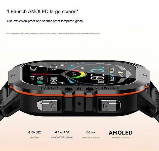 1.96 -inch vibrant AMOLED display with 410x502 resolution and shatter-resistant tempered glass