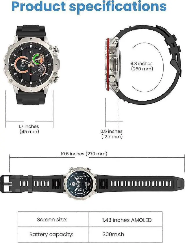 Elevate your fitness and connectivity with this advanced smartwatch featuring a vibrant 1.43 -inch AMOLED always-on display and customizable watch faces.