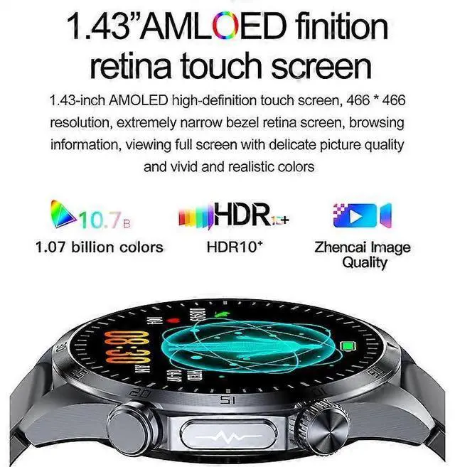 High-Definition AMOLED Screen: 1.43 -inch vibrant display with 466*466 resolution and customizable watch faces for a personalized look.