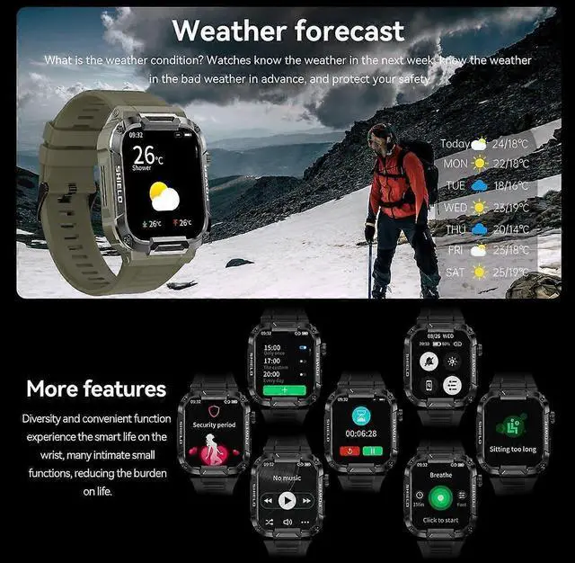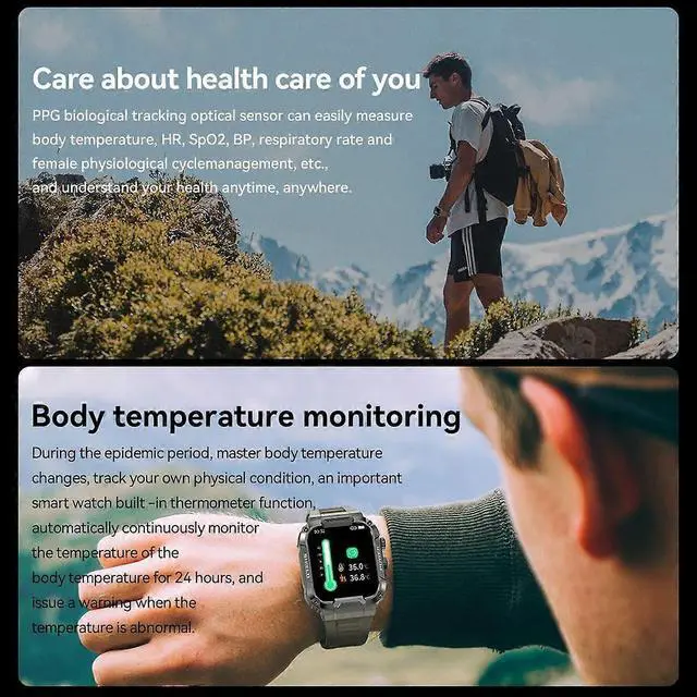 Perfect for fitness enthusiasts and outdoor adventurers, this military-grade smartwatch combines durability with advanced functionality for an active lifestyle.