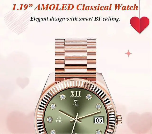 Upgrade your lifestyle with this stylish pink smartwatch featuring a vibrant 1.19 -inch AMOLED display for crystal-clear visuals.