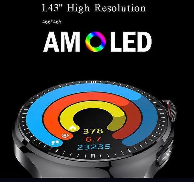 Elevate your health and fitness with this advanced smartwatch featuring a vibrant 1.43 \" AMOLED display and comprehensive monitoring capabilities.