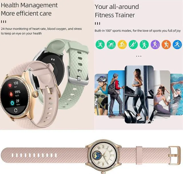 **Bluetooth Calls & Notifications**: Make/receive calls directly and get SNS alerts (Facebook, WhatsApp, Twitter) on the 1.38 -inch HD touchscreen.