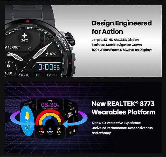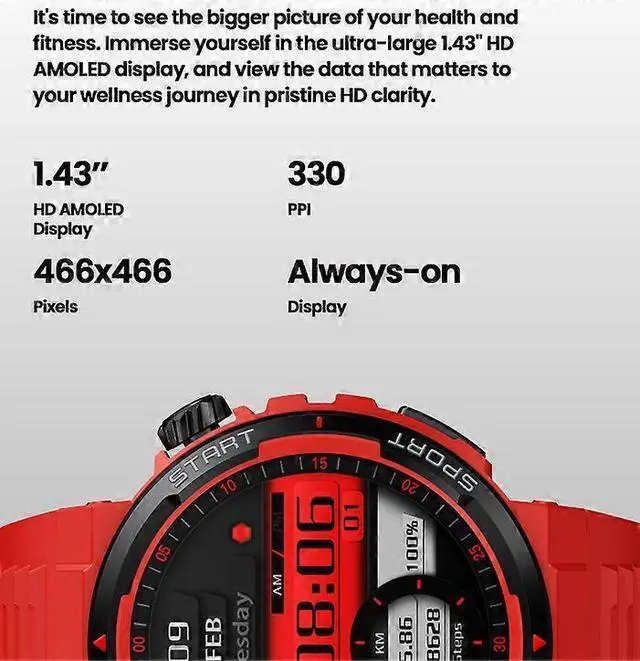1.43 -inch HD AMOLED display for crystal-clear health and fitness data