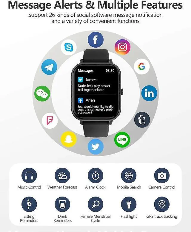 Bluetooth Call Function: Answer/make calls directly from your wrist with call records and phonebook storage.