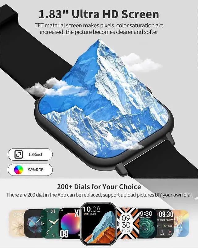 1.83" HD Touchscreen: Customize with 200+ dials or upload personal photos for a unique look.