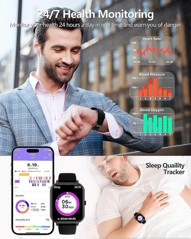 24/7 Health Monitoring: Tracks blood pressure, heart rate, and sleep quality with weekly analysis reports.
