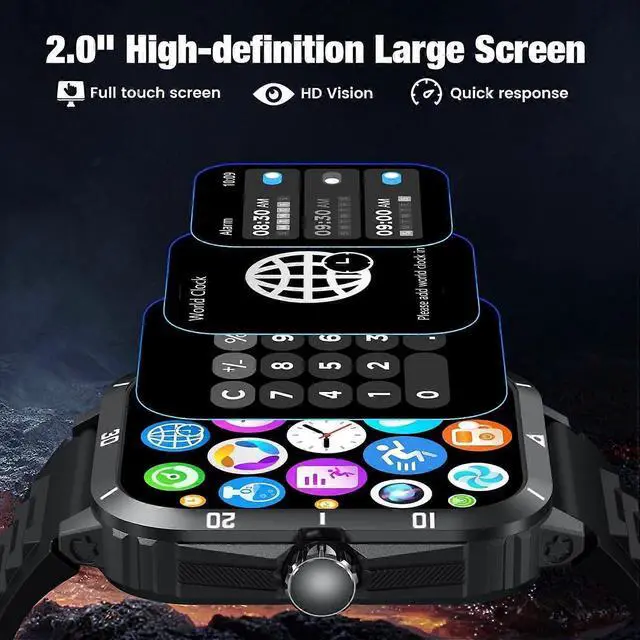 Upgrade your daily routine with this advanced smartwatch for men, featuring a 2.0 -inch full touch screen and 3ATM waterproof rating for durability.