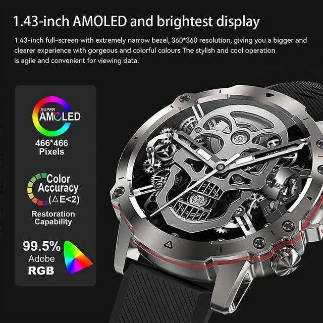 Elevate your active lifestyle with this rugged military smartwatch for men, featuring a 1.43 -inch AMOLED always-on display for crisp visuals and a 400mAh battery lasting 5-7 days.