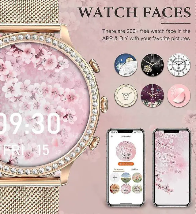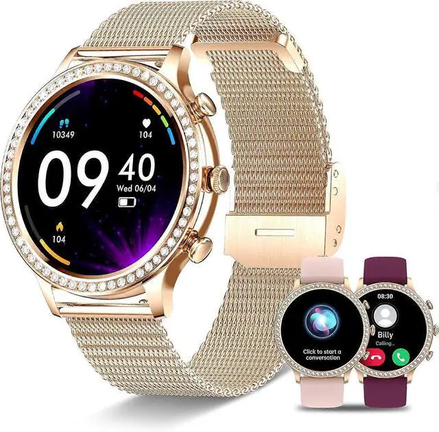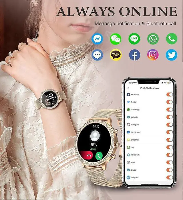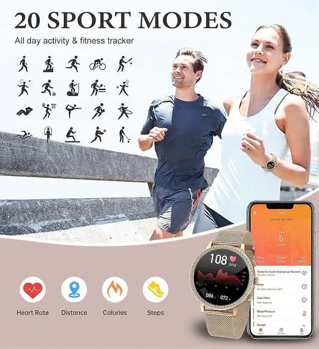 Elevate your style and wellness with this elegant smartwatch for women, featuring a 1.32" HD touch screen and 60 zircon accents. Compatible with Android and iOS, it offers seamless connectivity and versatile functions for daily use.
