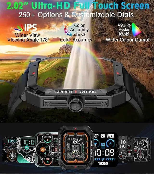 Elevate your fitness and daily life with this advanced smartwatch for men, featuring a 2.02 -inch ultra-high-resolution display for vibrant visuals and effortless touch controls with shortcut buttons and a rotatable digital crown.