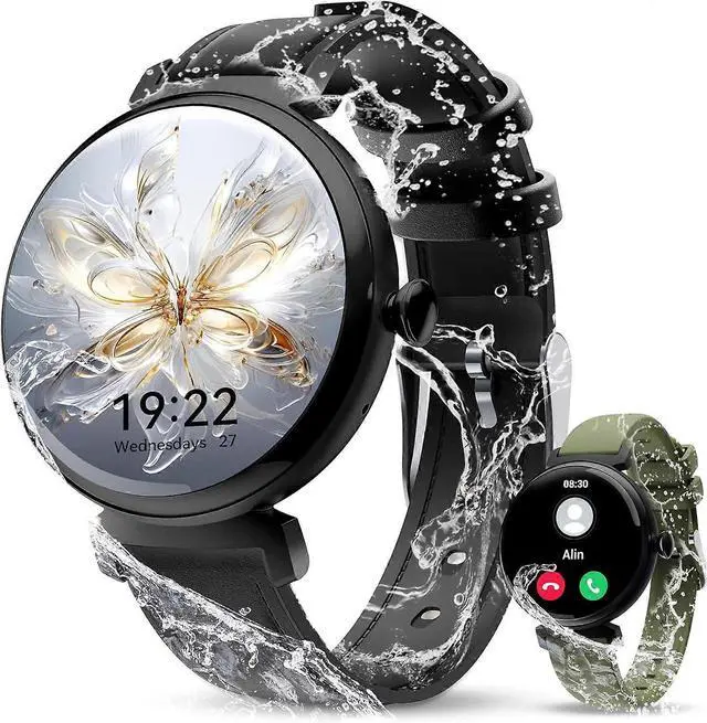 Elevate your daily routine with this elegant 1.04 -inch AMOLED women's smartwatch, featuring a classic round dial with interchangeable leather and silicone straps for versatile style.