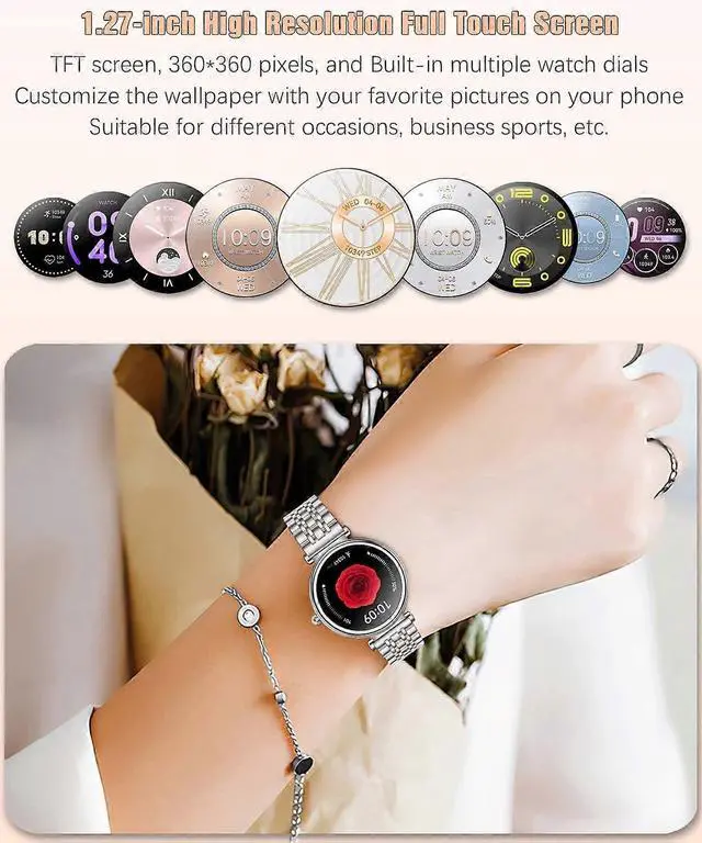 Elevate your style and wellness with the RollsTimi Women's Smart Watch, designed for modern women seeking elegance and functionality. Available in silver, full gold, and two-tone gold finishes with a comfortable stainless steel strap, this watch seamlessly blends into casual and business settings.