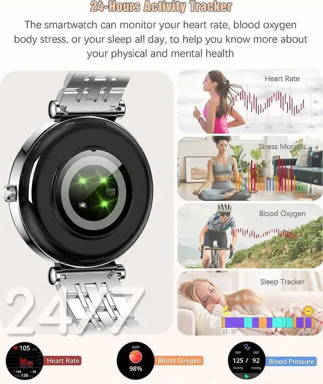 - **Advanced Health Monitoring**: Track heart rate, blood pressure, menstrual cycles, and sleep stages (deep, light, awake) for comprehensive wellness insights.