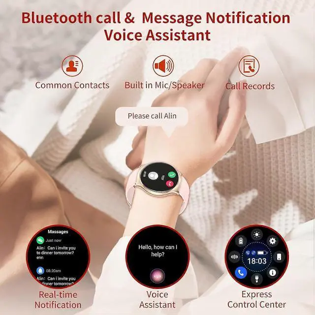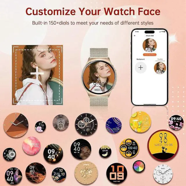 Elevate your fitness and style with this advanced women's smartwatch, featuring a vibrant 1.43 -inch AMOLED HD touch screen for crystal-clear visuals. Stay connected and healthy with seamless smartphone integration, all-day activity tracking, and versatile functionality.
