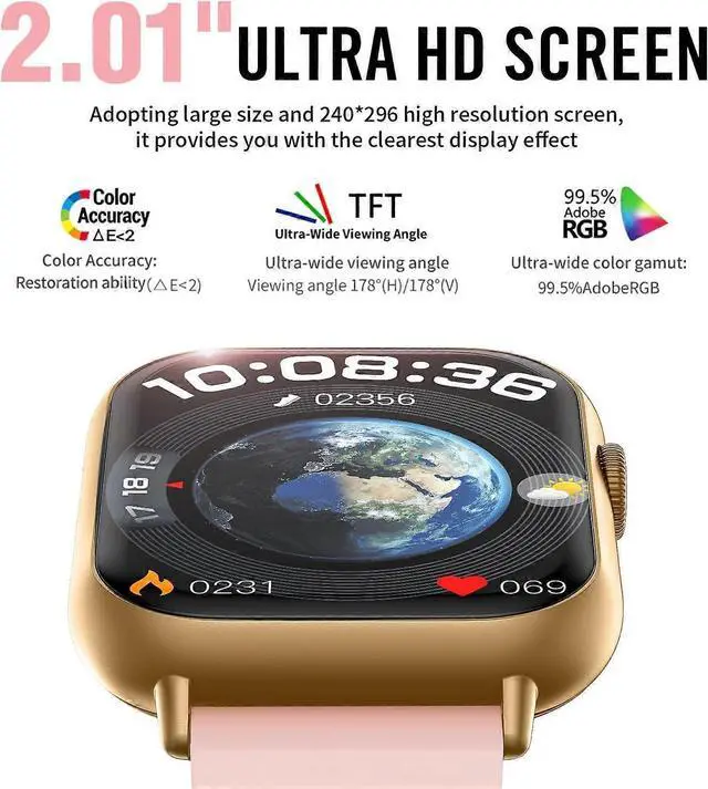 Stay connected and healthy with our advanced smartwatch featuring a vibrant 2.01" full HD touch screen and Bluetooth 5.3 for seamless smartphone integration. Ideal for adults, this watch combines style with functionality for everyday use.