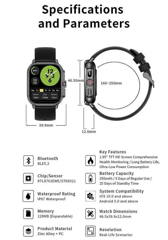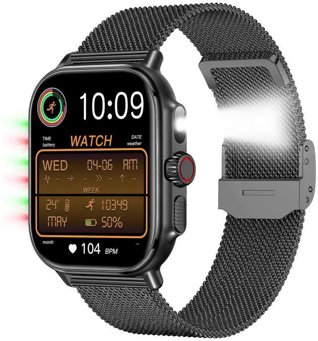 - **Extra Features**: Music playback, wireless charging, flashlight, and atmosphere light for added convenience. Ideal for fitness enthusiasts and busy adults seeking a versatile, health-focused smartwatch.