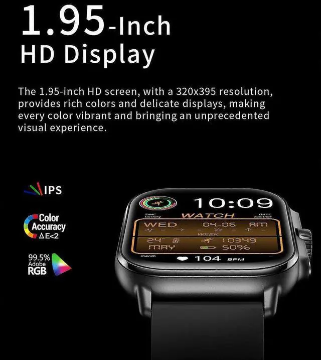 Stay connected and healthy with our advanced Bluetooth smartwatch, featuring a 1.95 -inch HD display for crisp visuals.