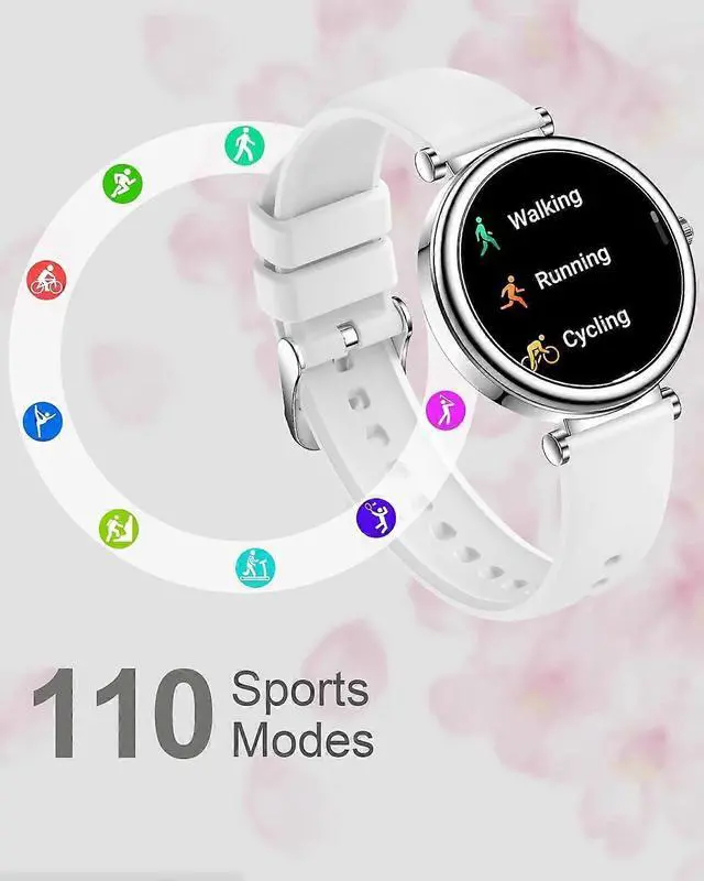 Elevate your fitness and style with this versatile smartwatch for women. Featuring Bluetooth call functionality and smart notifications, stay connected without reaching for your phone. Monitor your health with continuous heart rate tracking, sleep analysis, and over 110 sports modes including running, yoga, and cycling. Customize your look with interchangeable bands and enjoy effortless navigation on the vibrant touchscreen display. Easy setup via the FitCloudPro app ensures you're ready to go in minutes.