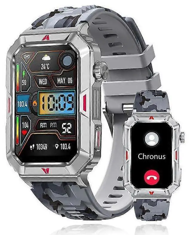Stay connected and track your fitness with this advanced smartwatch for men. Featuring a 1.57 -inch square touch screen and camouflage gray design, it combines style with functionality for everyday use.
