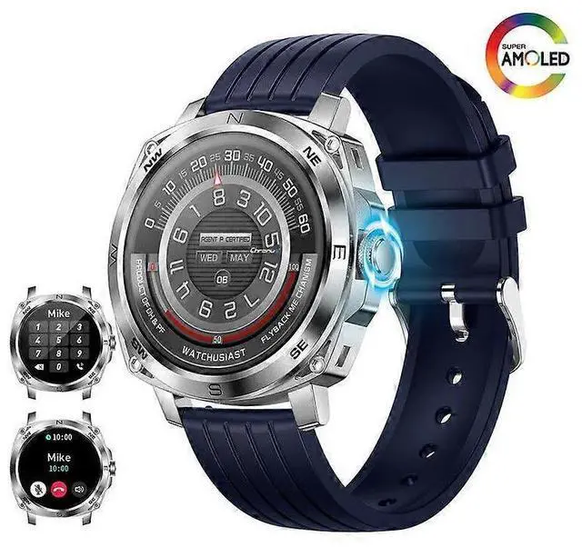 Elevate your daily routine with this advanced smartwatch for men, featuring a sleek blue design and robust functionality.