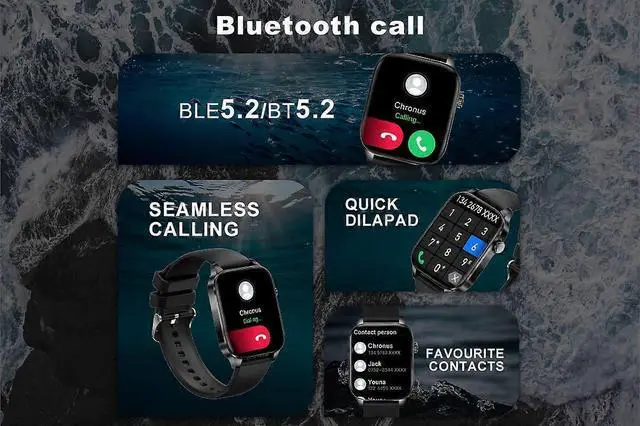 - **Bluetooth Call Function**: Make and answer calls directly from the watch with built-in speaker and dialer support.