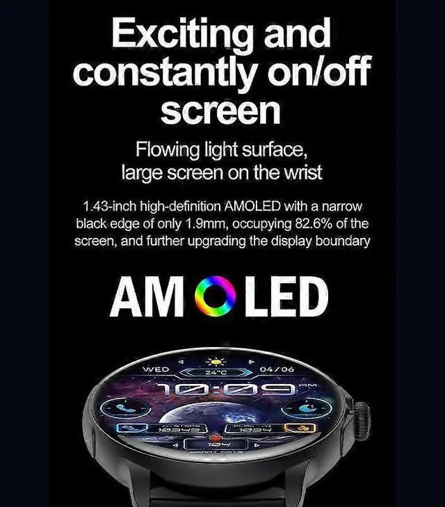 **Crystal-Clear Display**: 1.43 -inch AMOLED screen with always-on mode and 82.6 % screen-to-body ratio for vibrant, easy viewing.