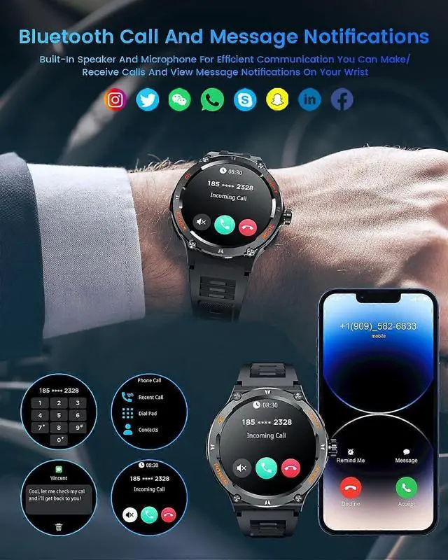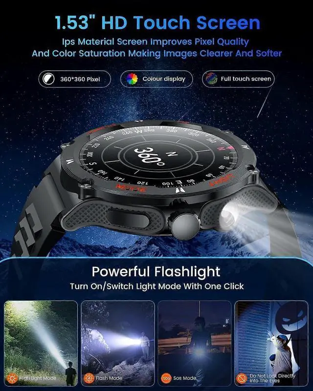 - Bluetooth calling, message notifications, and built-in flashlight with multiple modes