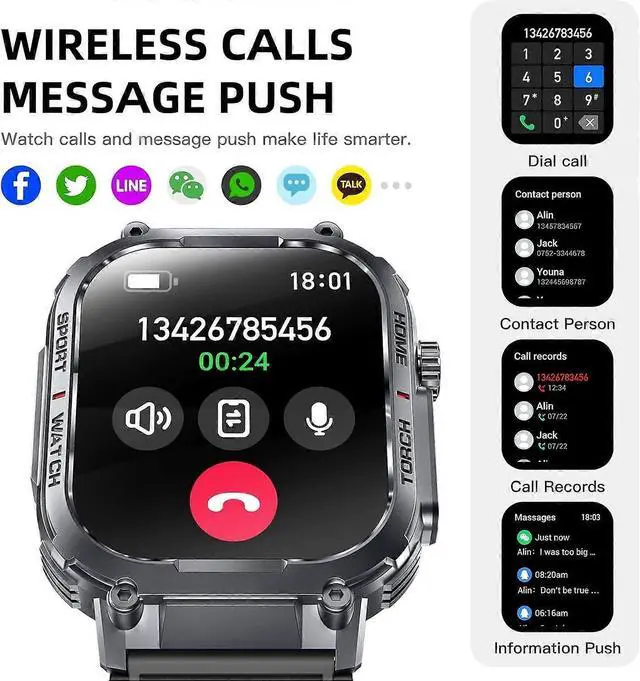 * **100+ Sports Modes: ** Accurately track data for running, cycling, swimming, basketball, and more. Monitor real-time calories, distance, and heart rate to analyze and improve your performance.