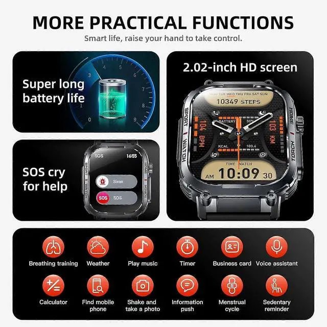 * **Outdoor Essentials: ** Features a built-in smart compass for navigation and a side highlight flashlight for night-time activities and emergencies.