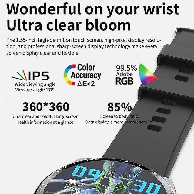 Advanced Health Monitoring: Track ECG with user calibration, heart rate, blood oxygen, sleep quality, stress levels, and continuous non-invasive blood sugar monitoring.