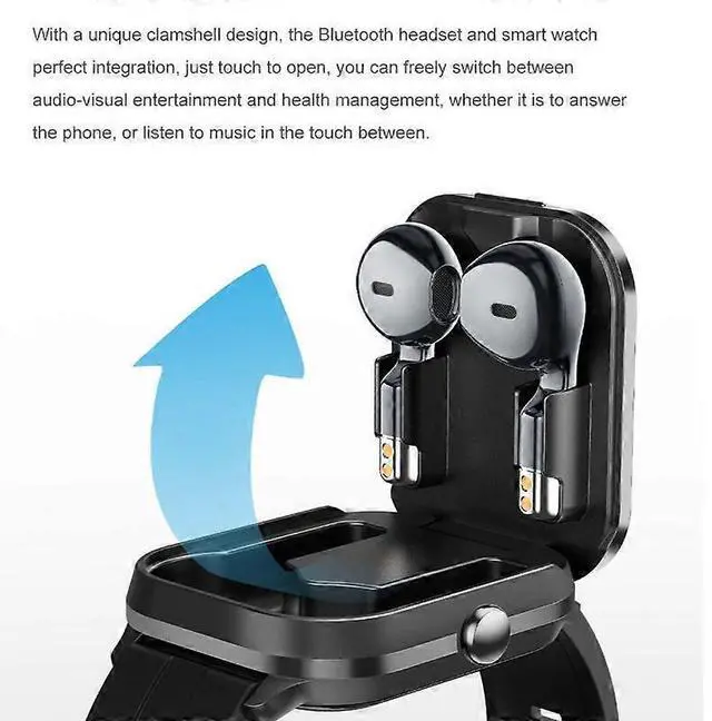 Experience ultimate convenience with this 2-in-1 smartwatch featuring integrated TWS earbuds and advanced health tracking.