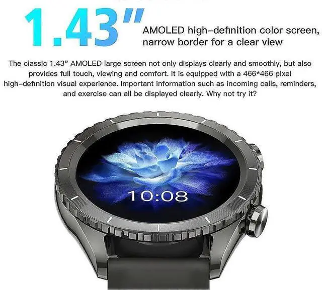 Elevate your wellness and connectivity with this advanced smartwatch featuring a vibrant 1.43 -inch AMOLED display and Chat-GPT integration.
