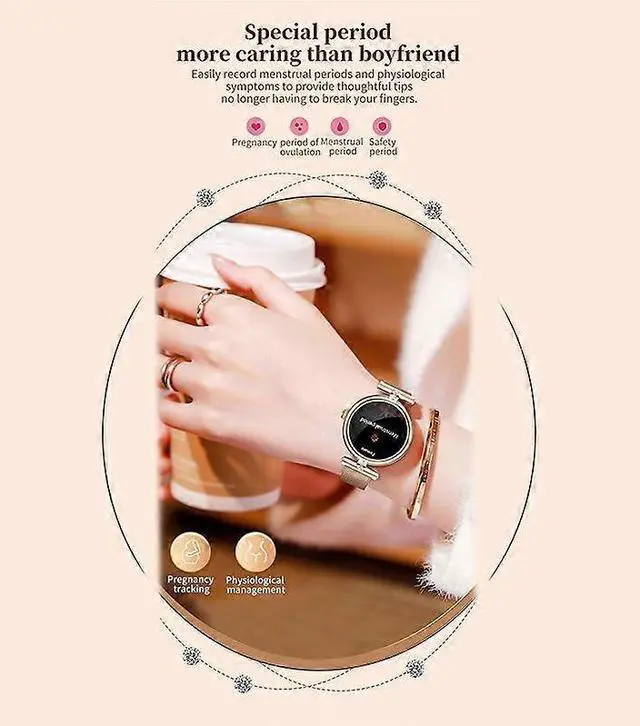 Comprehensive health monitoring: heart rate, blood pressure, SpO2, and women's wellness tracking (menstrual, ovulation, pregnancy)