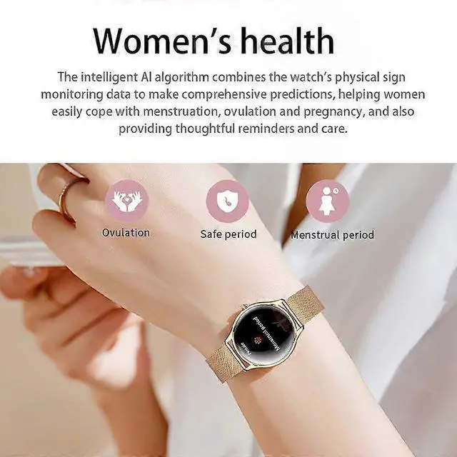 All-day health monitoring: Tracks heart rate, blood pressure, SpO2, sleep, and AI-powered womens health (menstrual/ovulation forecasts)