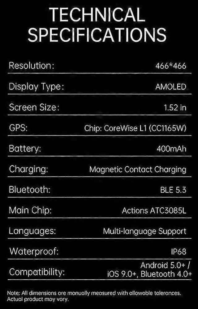 1.52 -inch AMOLED touchscreen display with 466x466 resolution for crisp visuals