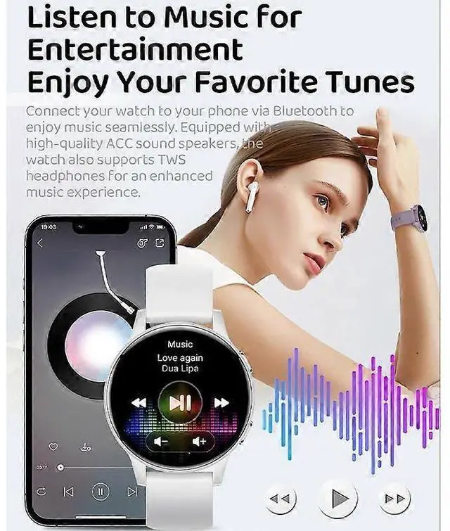 - **Sports & Music**: Multiple professional modes with real-time data tracking, plus Bluetooth music playback via built-in speaker or TWS earphones.
