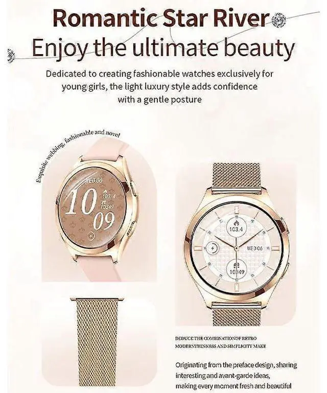 The Y35 smartwatch combines style and functionality for active women, featuring a 1.27 -inch curved TFT display with customizable menus and IP68 water resistance.