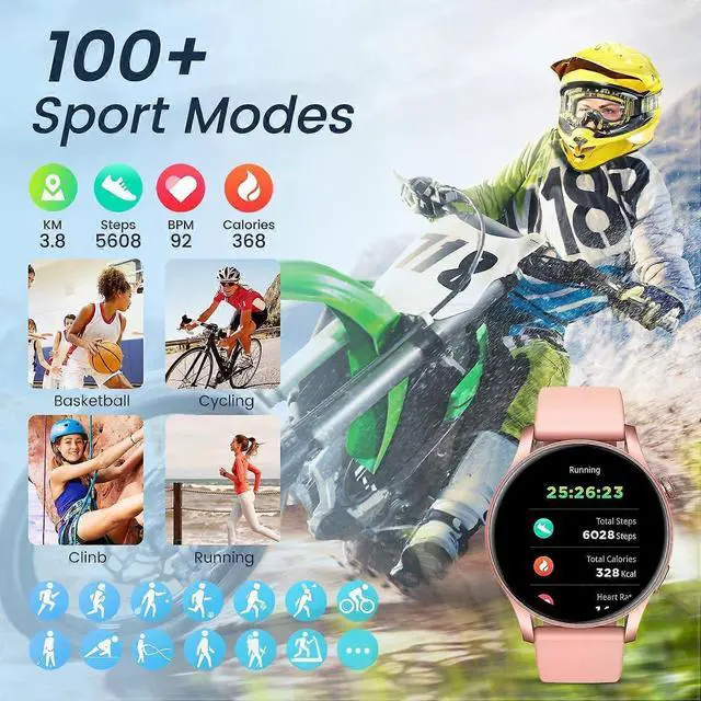 100+ sports modes for activities like running, cycling, and basketball with IP67 waterproof rating