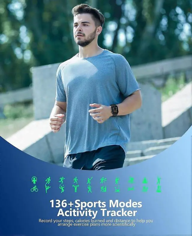 **136+ Sports Modes & GPS Connectivity**: Monitor steps, calories, and distance with real-time data; sync with phone GPS to view routes and pace maps for optimized workouts.