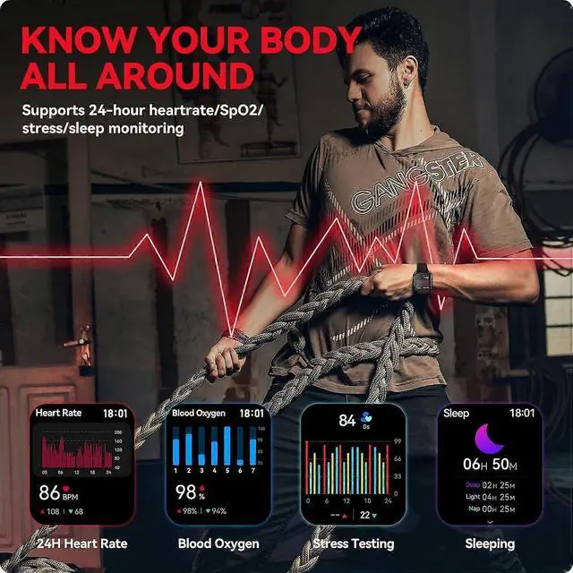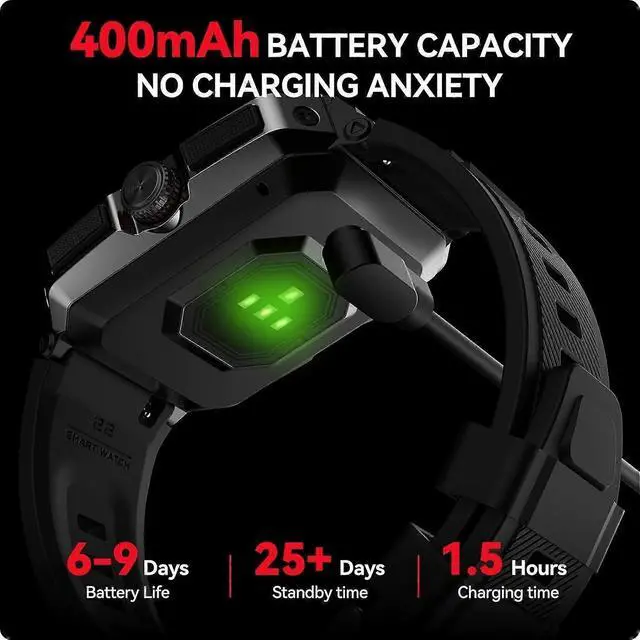 **Long Battery & Durability**: 400mAh battery lasts up to 10 days, IP68 waterproof for sports and daily use
