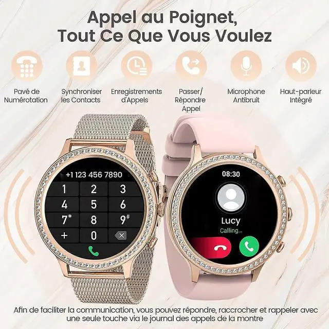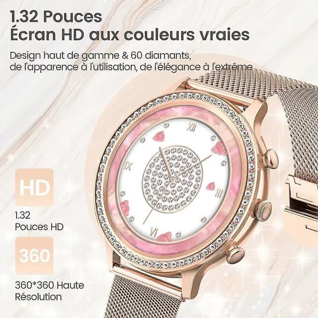 Elevate your style and wellness with this elegant rose gold smartwatch featuring a sparkling diamond bezel. Perfect for active women, it combines fashion with advanced health monitoring and connectivity features.