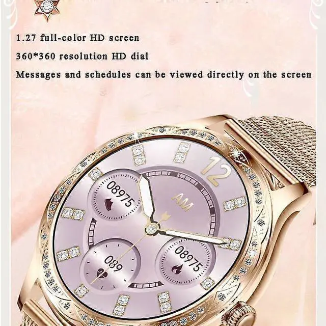 Elevate your lifestyle with this elegant smartwatch featuring a diamond-encrusted rose gold design and a vibrant 1.27 -inch AMOLED HD display for crystal-clear visuals.