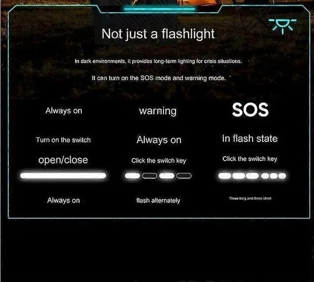 Built-in LED flashlight with SOS mode for nighttime safety and emergencies