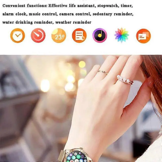 - **Vibrant AMOLED HD Display**: 1.27 -inch full-color screen with 360x360 resolution for crisp visuals and diamond-encrusted luxury design.
