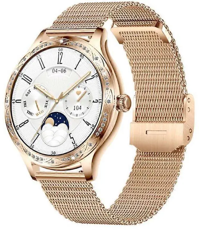 Elevate your daily routine with this elegant rose gold smartwatch, featuring a diamond-encrusted design and advanced health tracking.