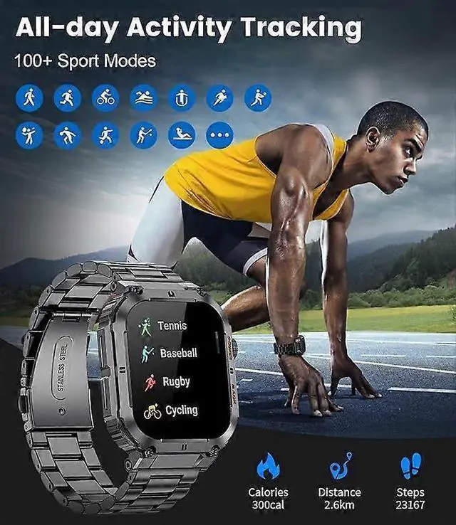 **100+ Sports Modes**: Cover running, cycling, yoga, football, and more. Monitor real-time data like heart rate, distance, speed, and calories to achieve fitness goals effectively.