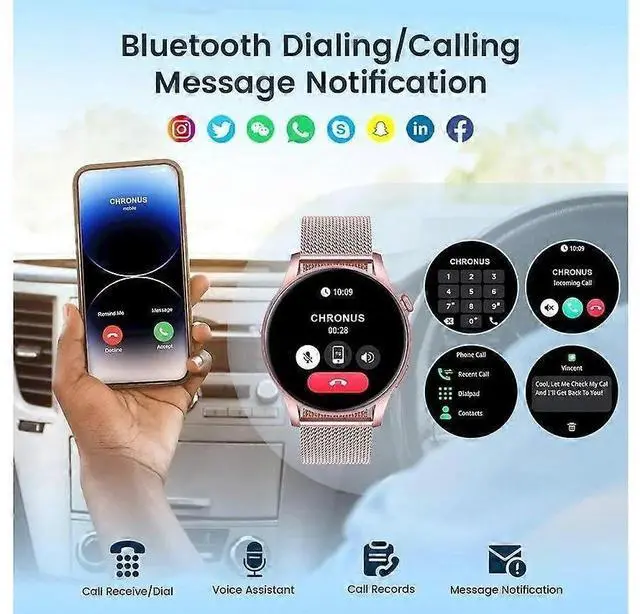 Call answering, voice assistant, and app notifications (SMS, social media)